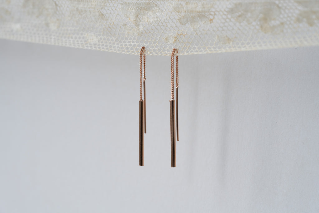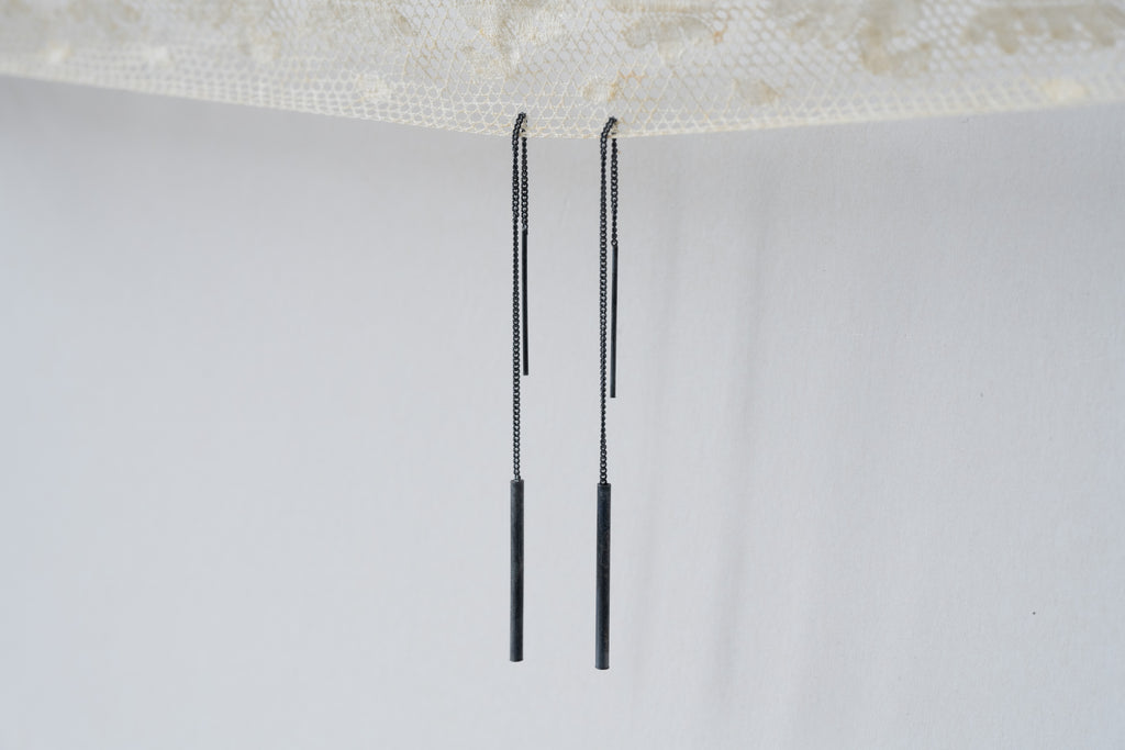 Sterling silver, oxidized silver or silver gold plated elegant bar earrings. These can be used in three different lengths: all the way through, in the middle or at the beginning.
