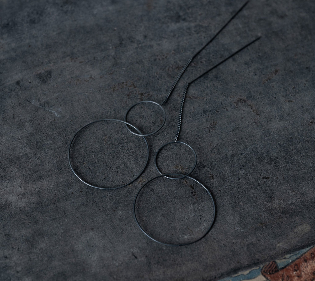 'Two rings' chain stick earrings | 925 Silver oxidazed