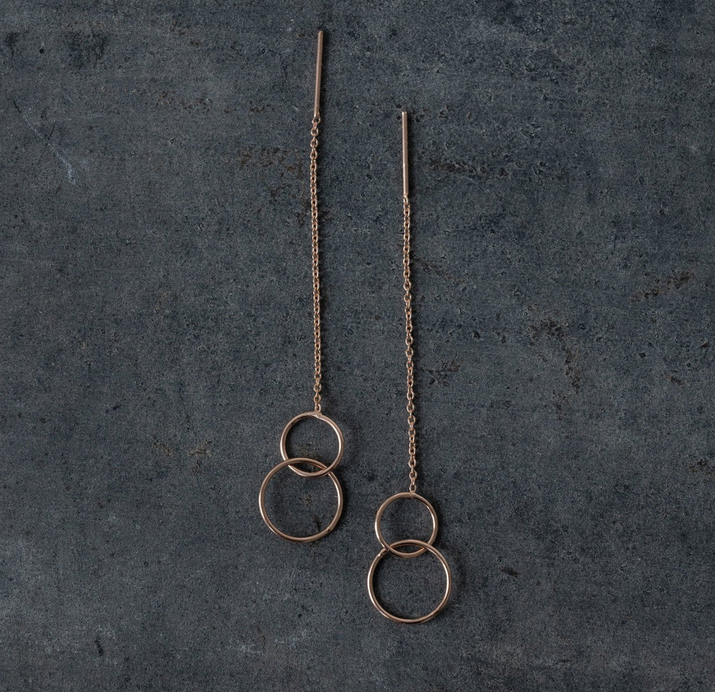 simple 925 silver two small rings chain stick earrings (the bigger ring is 11 mm diameter)